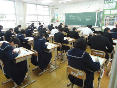 中学1・2年生は、後期の中間テストが本日と明日行われます。その様子です。