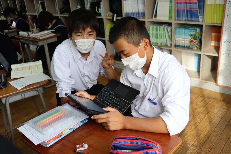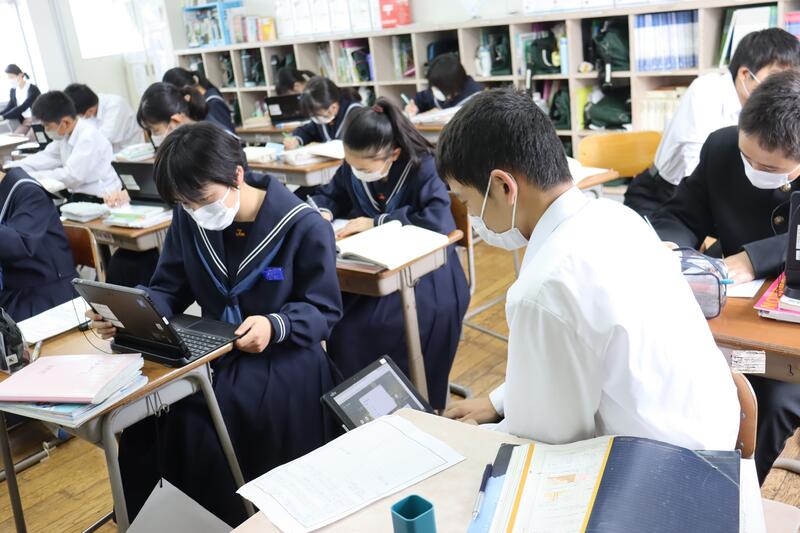中学1年生は国語のレポートをどんどん進めていました。アンケートなど、自分で調査を行った結果を、グラフや表にあらわして、わかりやすく説得力のあるレポートを書いていました。