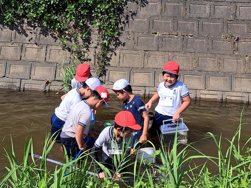 小学2年生は、生活科で川の生き物を見つけに行きました。みんなこの日をとても楽しみにしていました!わくわくです!