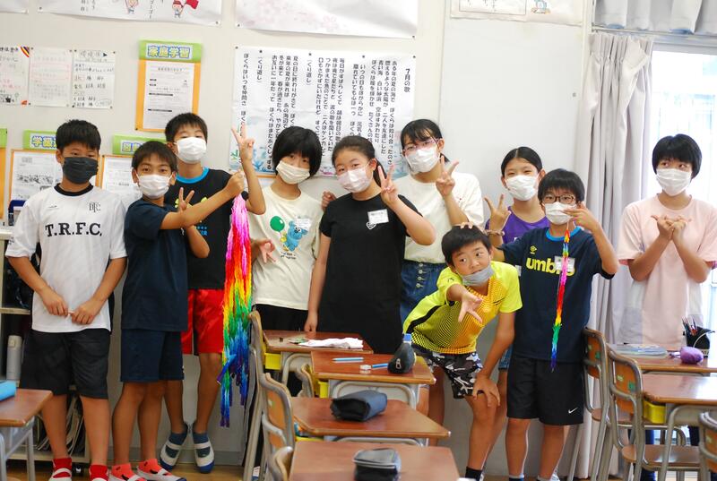 こちらは小学6年生の千羽鶴です。平和への祈りを込めて、みんなで折りました。美しく仕上がっていますね。「折り鶴」の歌も練習しています。