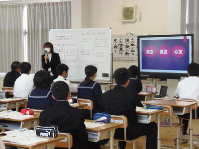 5時間目に中学2年生で道徳の研究授業が行われました。真の友情について、話し合いました。