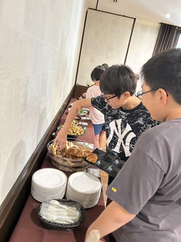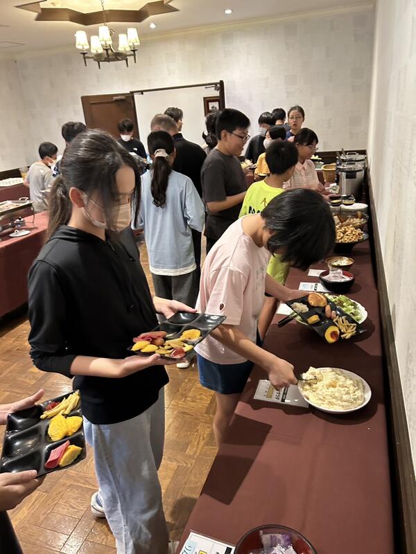修学旅行も2日目です。ホテルでの朝食バイキングを楽しんでいます。