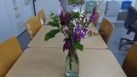 今日は、地域の方からいただいた花を2人の3年生が活けてくれました。