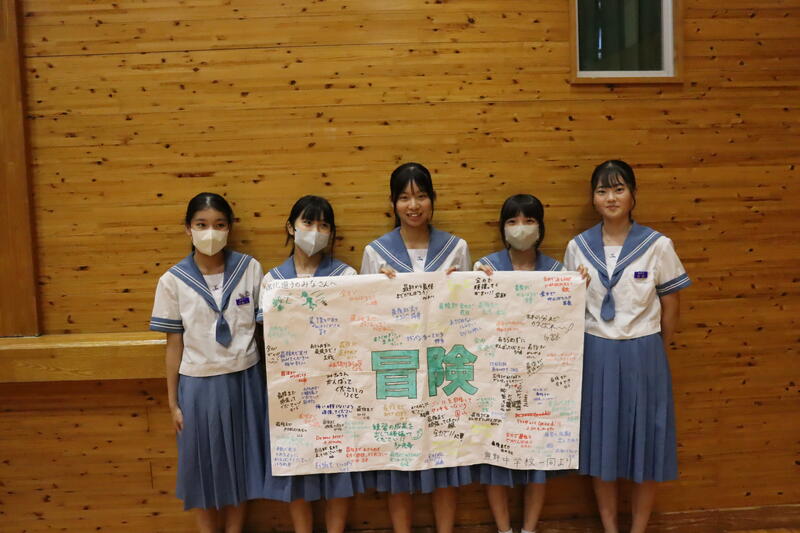 選手への激励の言葉や選手代表決意表明、応援フラッグ渡し、校長からの話などを行いました。