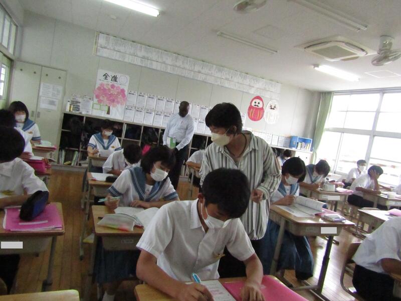 中学2年生は中村祐子先生、ケビン先生と一緒に英語の学習です。