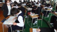 ↓ 4時間目に授業の様子です。中学3年生は、英語の授業です。2人組になって英文の問題を出し合っていました。さすが3年生、受検生として自覚がみられました。
