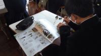 ケント紙への書き方を学んだあと、持参したスプーンの絵を書いていました。