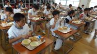 給食の準備が終わり、食べている小学校のクラスの写真を掲載します。