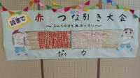 ↑ 読書で赤白綱引き大会の結果は、今日のお昼の段階で、赤団361冊、白団368冊です。赤団が追い上げてきました。