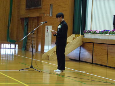 在校生を代表して、2年生の佐渡陸くんが立派な送辞を発表してくれました。