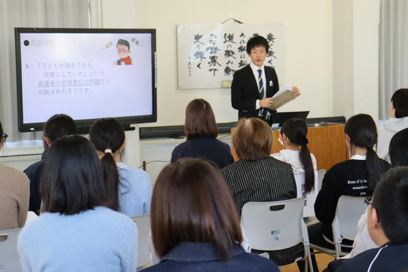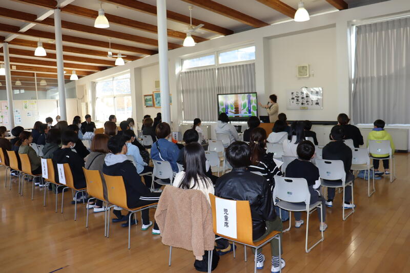 令和8年度に中学校に入学する児童とその保護者に参加いただき、中学校職員から中学校生活について説明しました。