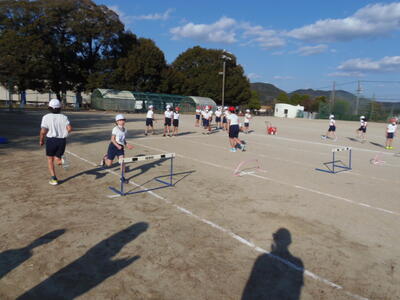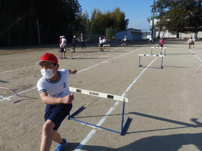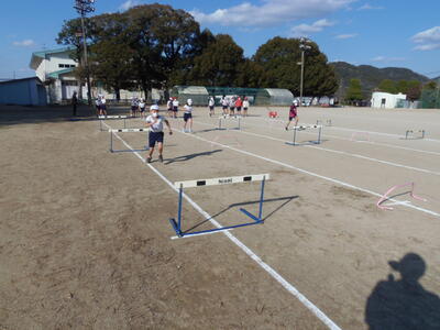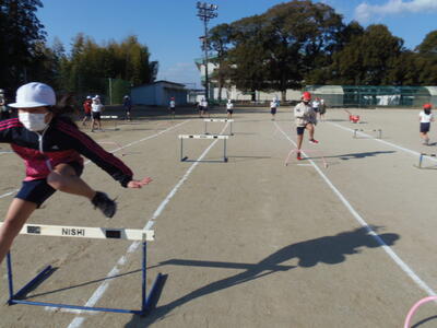 ハードル走をリズムよくとぶために繰り返し練習していました。