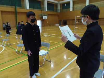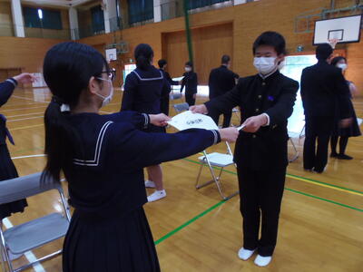 中学3年生は、卒業式の練習が始まりました。