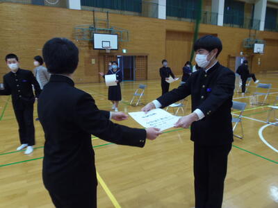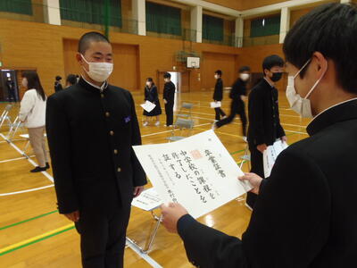今日は、証書授与の動きの確認がありました。友達と受け渡しの練習に繰り返し取り組んでいました。