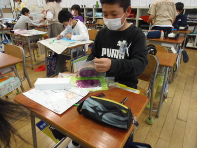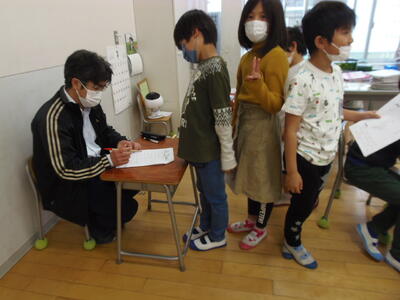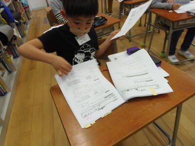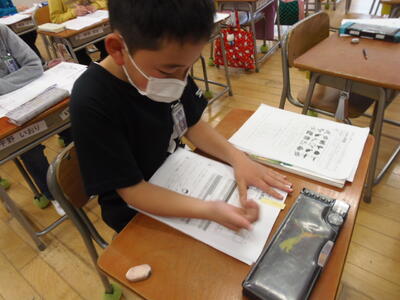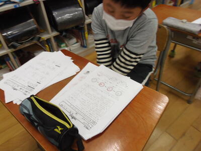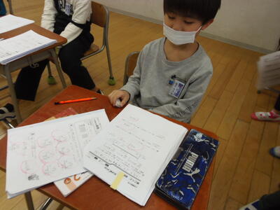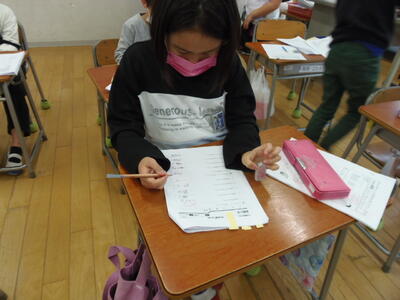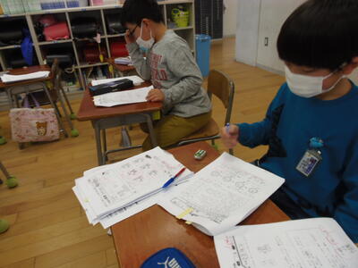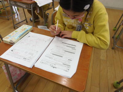 間違ったところの答え合わせに真剣に取り組んでいました。