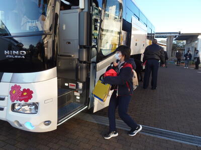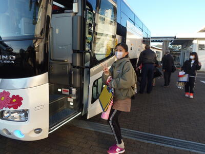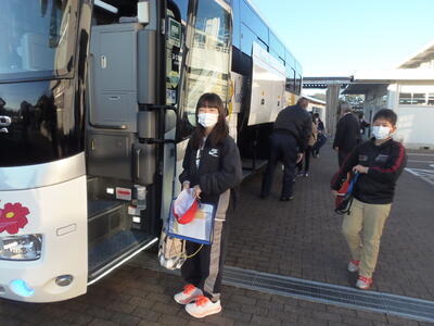 出発式の後、みんな元気にバスに乗り込んでいきました。
