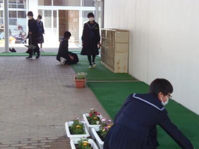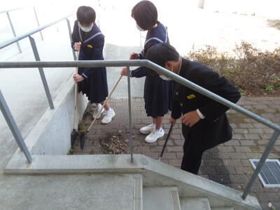 担当の場所を一生懸命取り組んでいました。先輩たちが、気持ちよく卒業していただけるように、隅々まできれいにしていました。