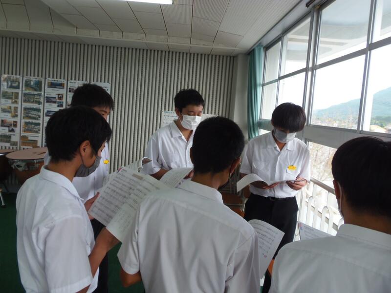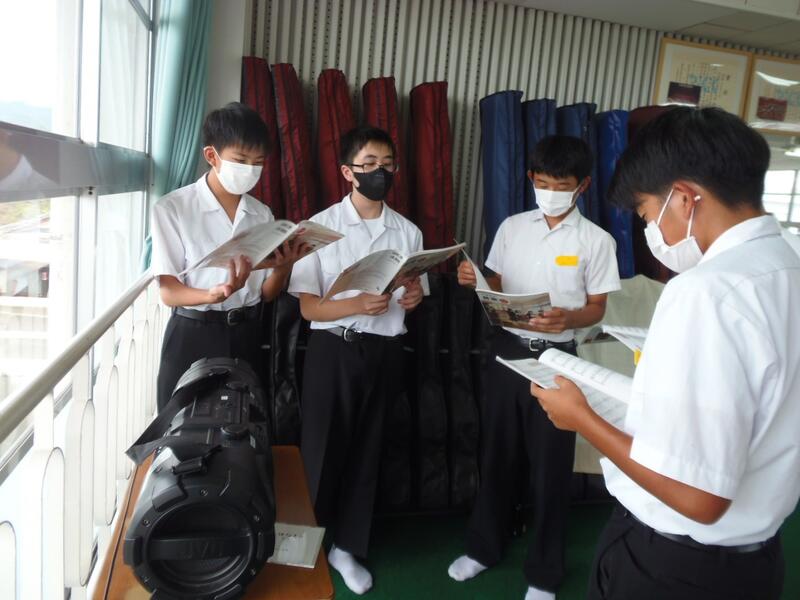 音楽部は今、コンクールに向けて一生懸命練習しています。生徒会執行部を中心に、音楽部に向けた応援旗を作成中です。