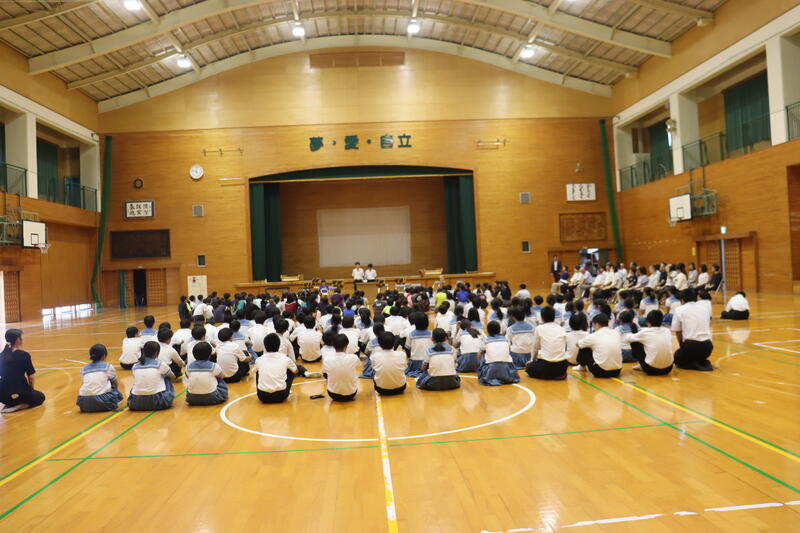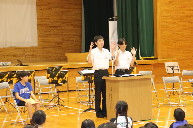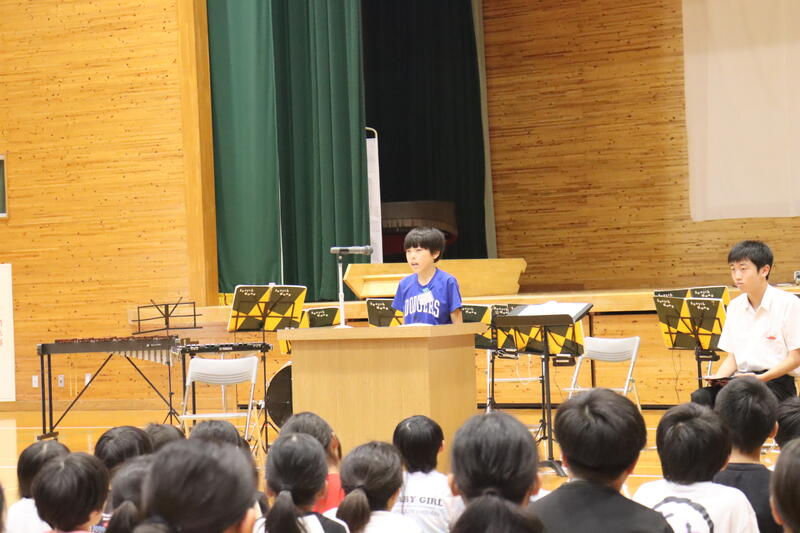 副校長の話の後、児童生徒代表が前期の反省と後期の目標を述べました。