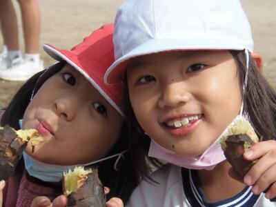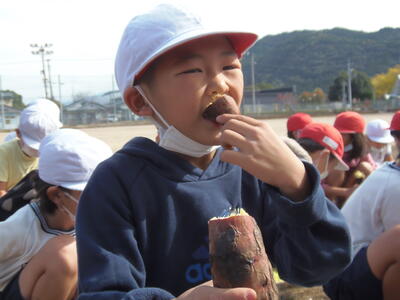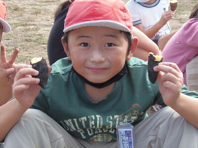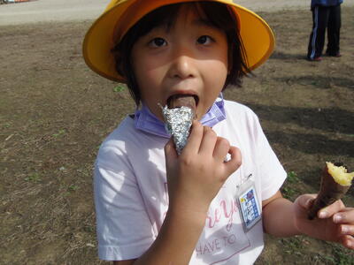 2年生も1個ずつ焼き芋をもらい、作ってくれた中学1年生にお礼を言いました。