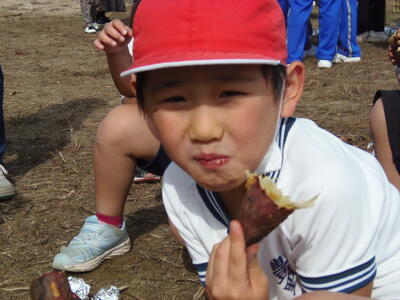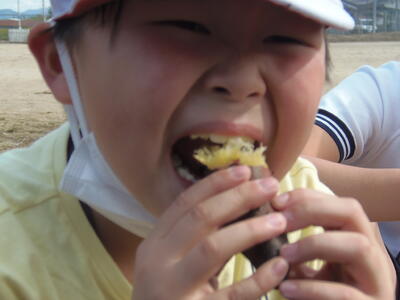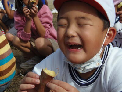 できあがった焼き芋を一ついただき、みんなで試食しました。