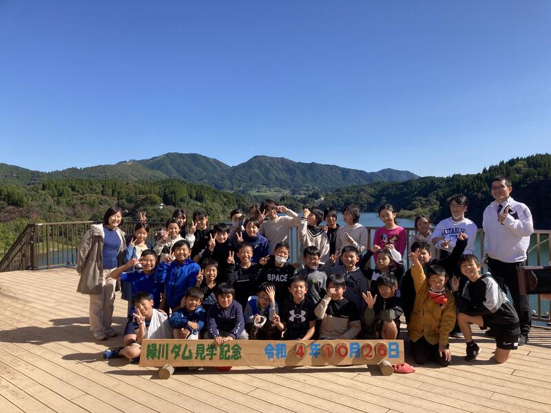 10月26日(水)に、小学4年生の社会科見学がありました。美里町にある緑川ダムを見学した後、上益城郡山都町の円形分水、通潤橋を見学し、五老ヶ滝を散策しました。お天気にも恵まれ、とても楽しく充実した1日を過ごした4年生です。通潤橋では、橋の上から放水を眺めました。ダイナミックな放水に感動しました!保護者のみなさま、おいしいお弁当と見学旅行の準備、ありがとうございました!