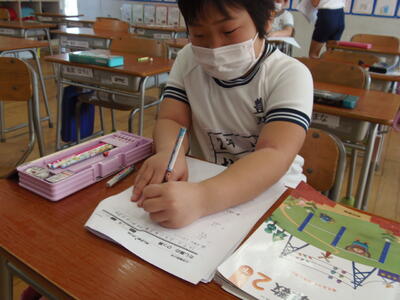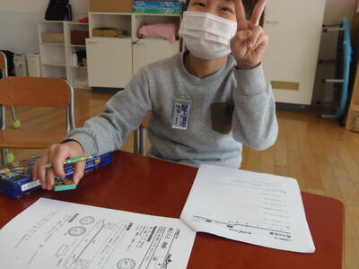 小学2年生は、算数の授業で1年間のまとめのプリントに挑戦していました。