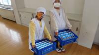 給食委員会で給食当番の正しい帽子のかぶり方やマスクの着用、手洗い消毒の徹底を行っています。ご苦労様です。