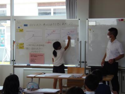 ↓ 3時間目に小学4年生の算数の授業で研究授業が行われました。