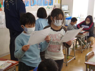 アンデルセンへの手紙を書き、できた人は、お互いに見せ合っています。