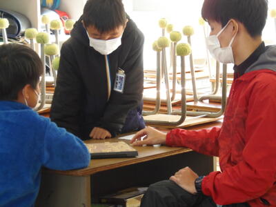 昨日・今日と中間テストをがんばった2年生。なんとこの2人は、反省会をしていました。「理科が難しかった・・・・」