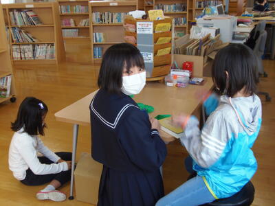 「勉強?」と話しかけると、「図書委員会の仕事をしています。」と返ってきました。