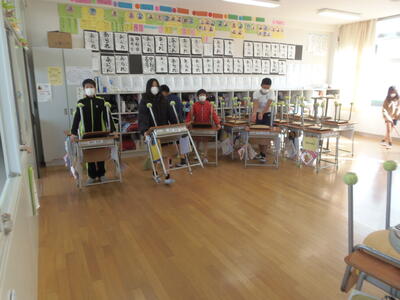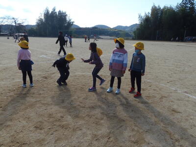 小学1年生がつくった「スイートポテト」を中学1年生におすそ分けして、そのお礼に遊んでいたそうです。