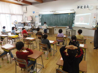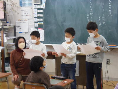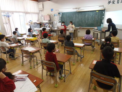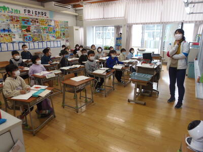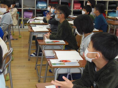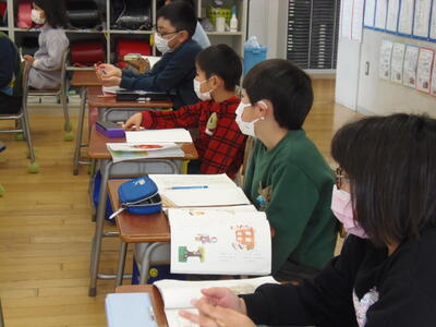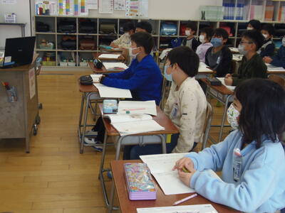 先生からポイントを教えてもらい、作文に挑戦していました。