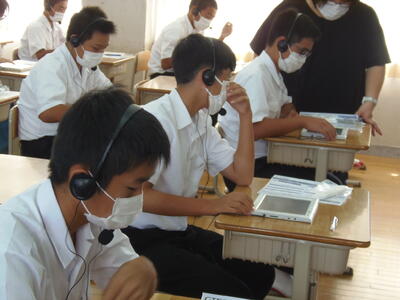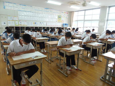 中学2年生と3年生は、宇城市主催の英語のテストOGECを受検しました。通常のテストとタブレットを使ったテストでした。