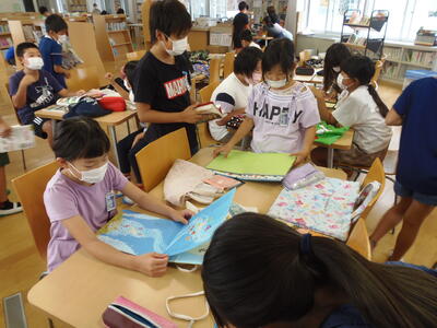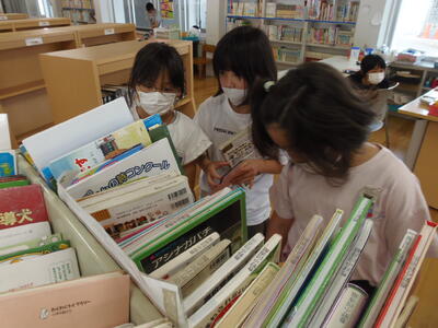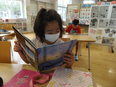 4年生は、図書室で本を選んでいました。今日2冊借りて帰りますので、ご家庭でどんな本を選んだか確認されてください。司書の清水先生からは、一冊は物語を借りるように指示があっています。