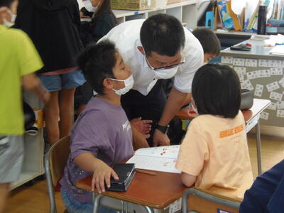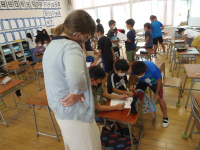 3年生は、外国語活動でした。ALTの先生から好きなもの(こと)の尋ね方を習い、友だちにインタビューをしていました。
