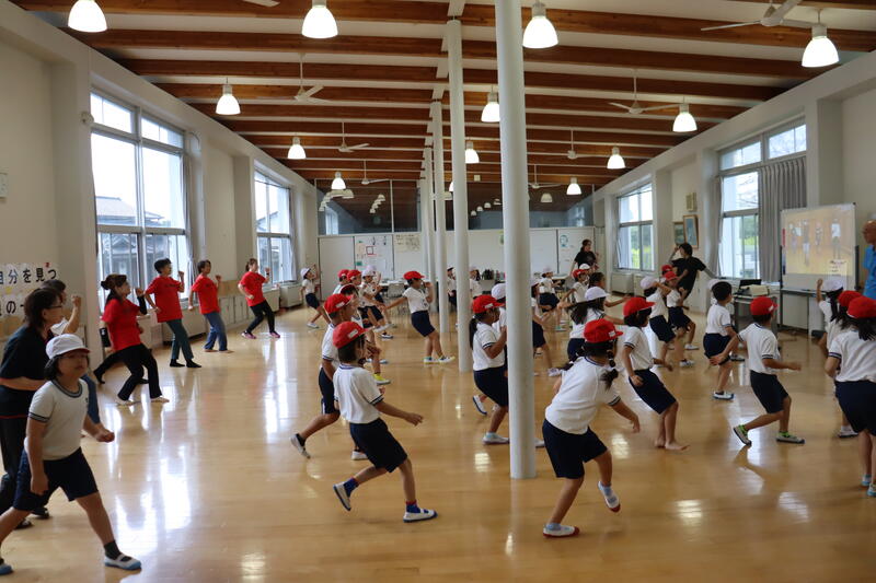 10月7日(月)の3校時に、小学1,2年生が女性部の方々とダンス交流を行いました。