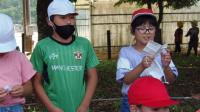 ↓ すると、椎の木の下で、4年生が集まっていたので、何をしているのかと思ったら・・・。