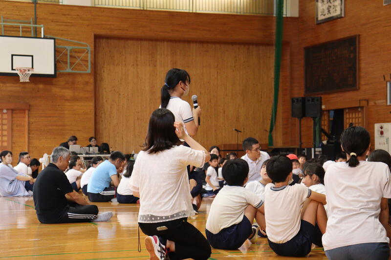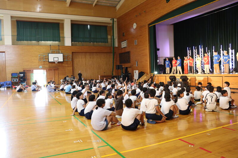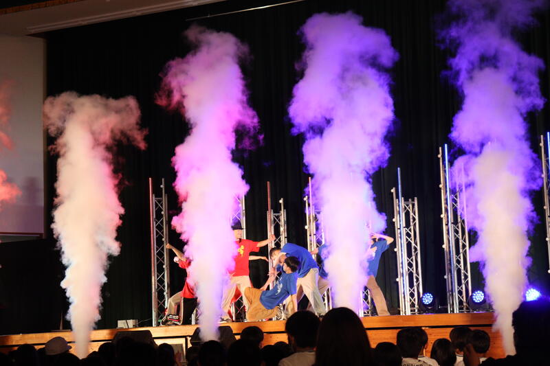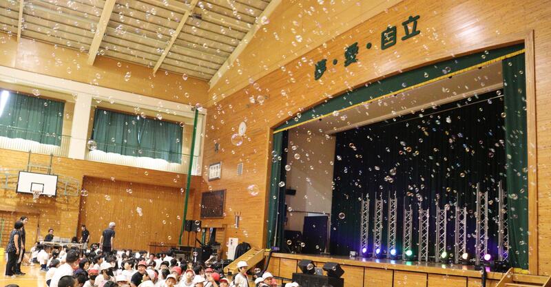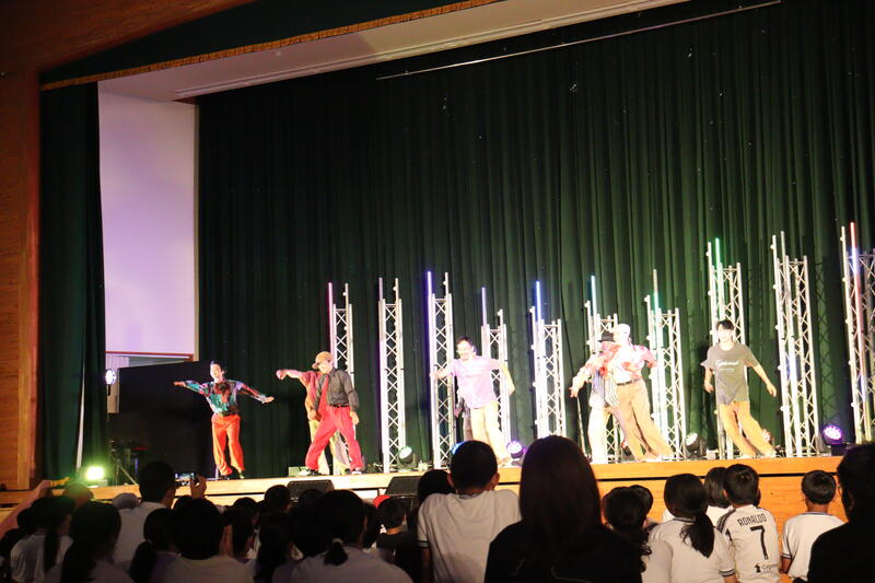 午後からは、小・中合同で芸術鑑賞会がありました。今年度は「カルティベイト」さんによるヒップホップダンスでした。体育館に入ると、シャボン玉が飛んでいました!コンサート会場のような雰囲気に驚き、わくわく感が一気に高まりました!