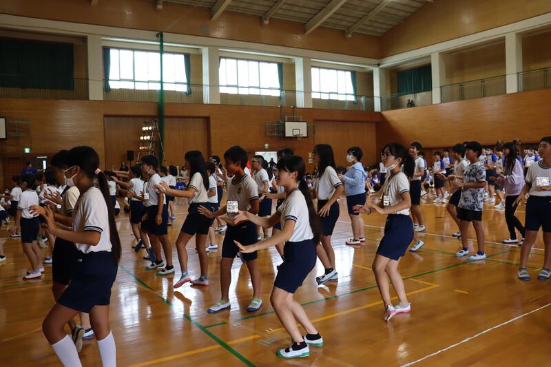 子どもたちもダンスに参加しました!中学生は、5月に行われたワークショップで練習したステップをしっかり覚えていて、披露してくれました。小学生は、この時間に振り付けを覚えて、中学生と一緒に踊りました。楽しかった!