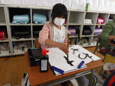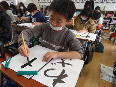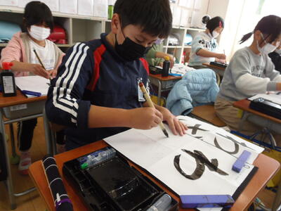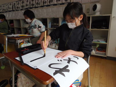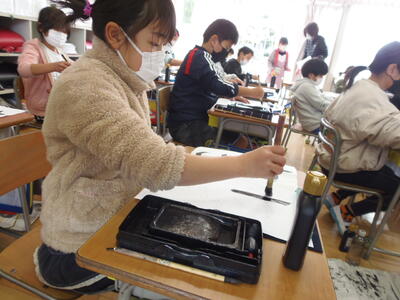 4年生は、習字をがんばっていました。