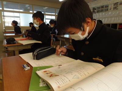 中学1年生は、数学の授業でした。