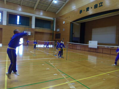 バドミントンをしていた男子生徒は、スマッシュをバンバン決めていました。