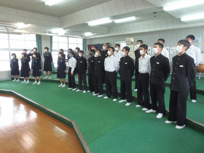 1年生は、体育館で練習していました。
