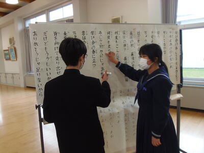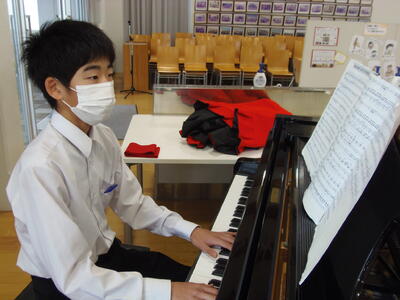 2年生は、音楽室で練習していました。みんな真剣に歌っている姿に感動しました。