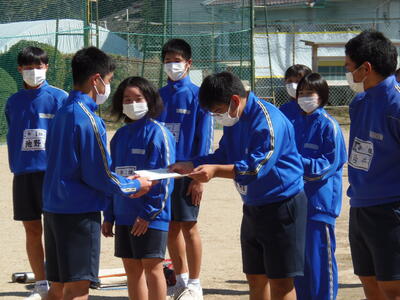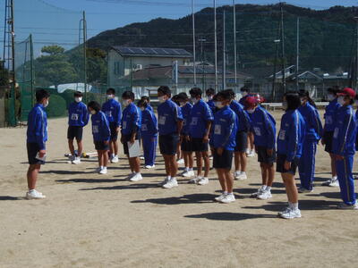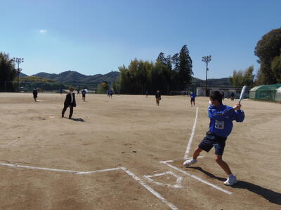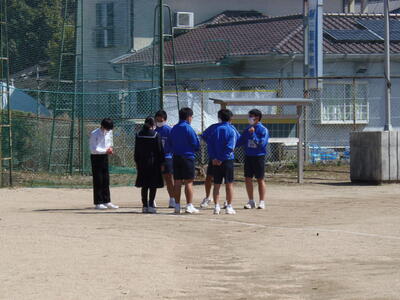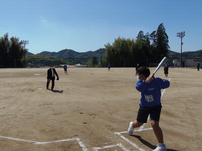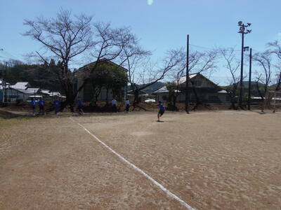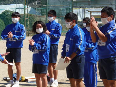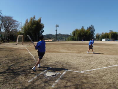 青空の下、中学2年生が、昼休みにソフトボールのクラスマッチでクラスの親睦を図りました。