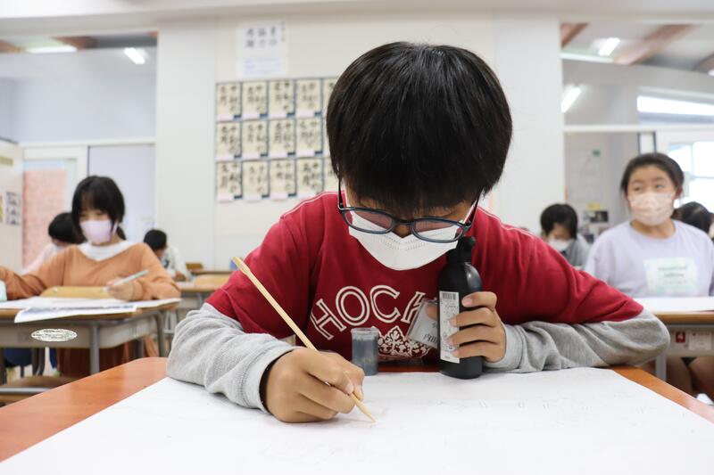 小学6年生は風景画に取り組んでいました。伸び伸びと大胆に筆を進める6年生。偉大な画伯ぞろいです。