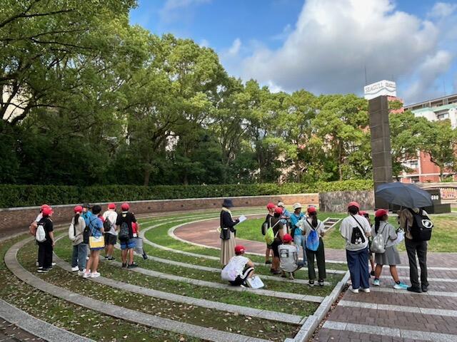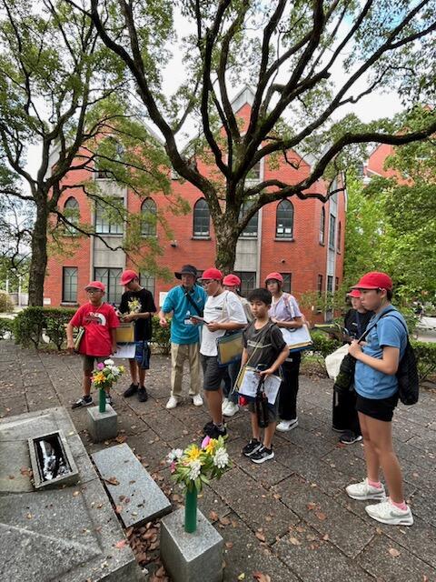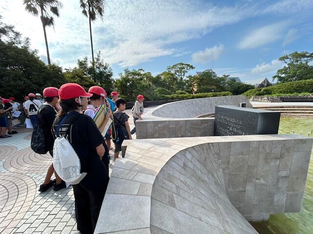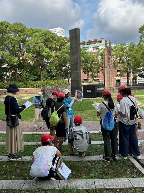 小学6年生はフィールドワークでボランティアガイドさんの話を真剣に聞きながら、戦争の悲惨さ、命の尊さについて学んでいます。