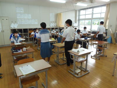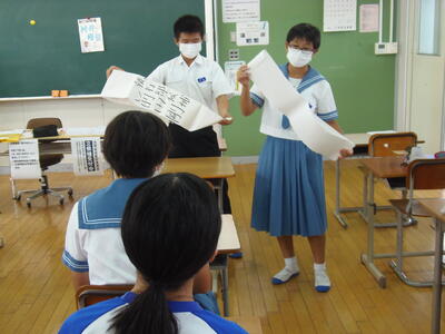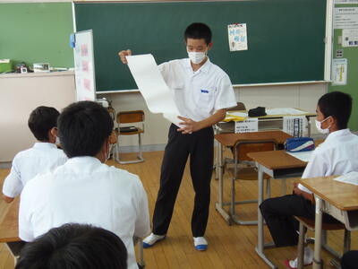 新生徒会の立候補者に選挙管理委員会から選挙運動に関する説明がありました。立候補者は、緊張の面持ちで説明を聞いていいました。